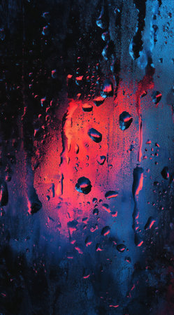 Raindrops on a window, nighttime, city lights, blue and red colors, a mobile phone wallpaper. --ar 71:128 --v 6.1 Job ID: f93a23f4-ebca-49db-a48d-1464fc05c998