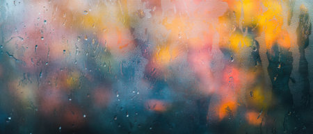 This colorful abstract background features water droplets and a foggy surface effect, creating an atmospheric and dreamy visual. Ideal for artistic projects.