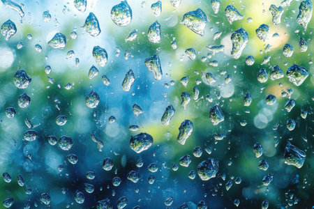 Close-up of fresh raindrops on glass creating a natural textured pattern.