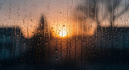 Raindrops on Window Evaporating at Sunrise Symbolizing Fleeting Emotions and Moments