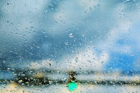 Rain drops on the windshield in rainy days