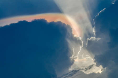 nature phenomenon iridescent pileus cloud or rainbow cloud in sky with sun beam