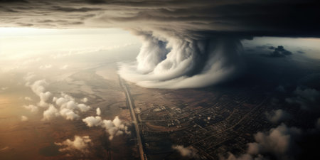 Tornado sky view from atmosphere top. Generative AI image weber.