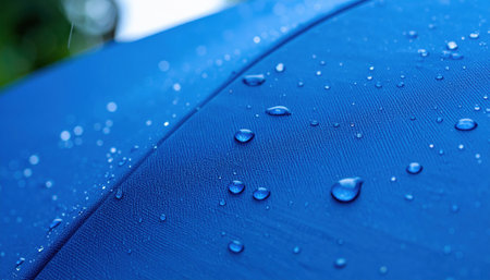 Macro umbrella fabric with raindrops detail widescreen with copy space left weather protection textile texture design advertising background