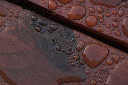 Pooled water on finished deck with woodgrain. Excellent background for illustrating construction or resilience.