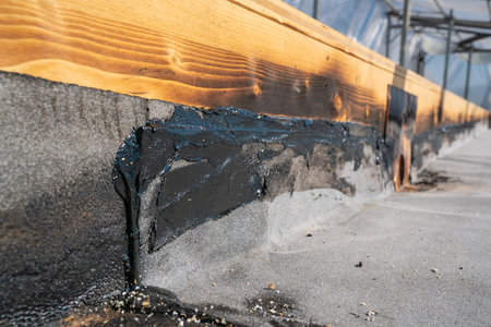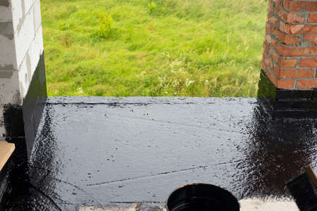 the terrace is covered with a layer of waterproofing mastic. Copy space