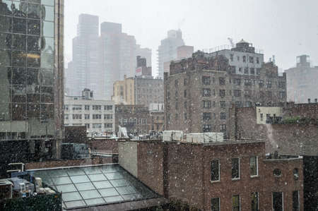 Falling snow in New York City. Winter Manhattan in the snowfall