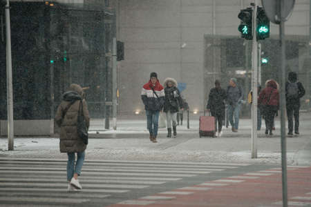 Warsaw, Poland - April 1, 2022: Snow in the center of the city