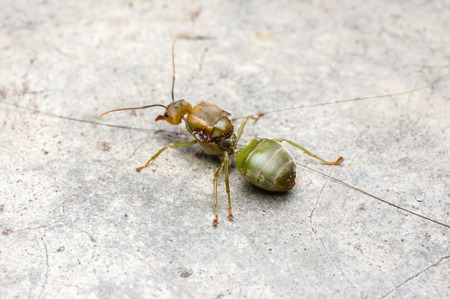 Red ant are moving red ant on the cement wall, Weaver ants macro photo, Selective focus.