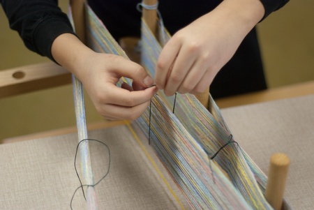 part of the weaving loom with thread