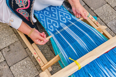 Close-up of artisan creating handmade textile with meticulous care, showcasing cultural heritage and craftsmanship