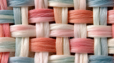 This close-up image showcases a beautifully woven textile in soft pastel tones, highlighting intricate patterns and textures ideal for design inspiration.