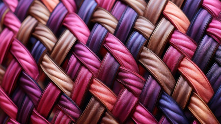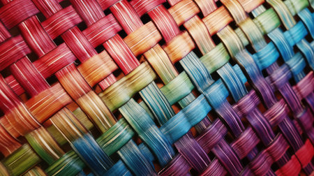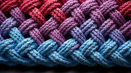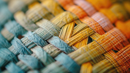 Close-up of colorful textile weave with intricate twisted yarn patterns. That the image is generated using AI.