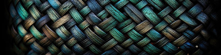 Detailed close-up of a blue woven pattern intricate texture and craftsmanship. ideal for textile design inspiration, showcasing the artistry in weaving details, perfect for catalog, print, and digital media use. Generative AI