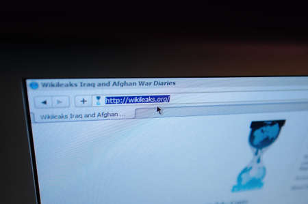 Close-up macro shot of Wikileaks.org website page with cable gate,
