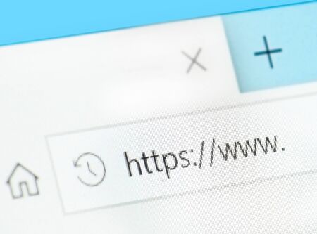 Address Bar of Web Browser. Computer screen macro. Close-up, shallow DOF. Internet search.