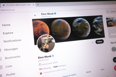 KONSKIE, POLAND - May 14, 2022: Elon Musk official Twitter account displayed on laptop screen