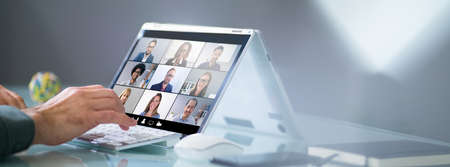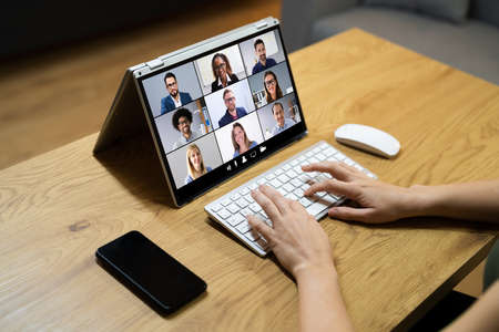 Virtual Video Conference Meeting Chat On Hybrid Laptop