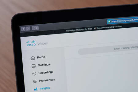New-York , USA - March 29, 2020: Cisco webex meeting program video conference url on computer screen close up view