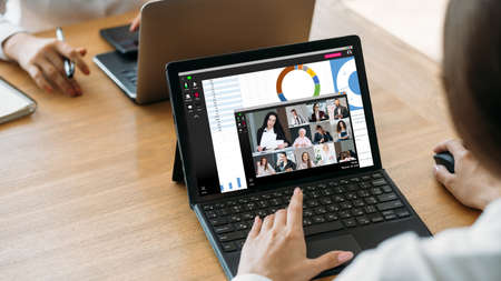 Business people on video conference for modish virtual group meeting of corprate business office workers