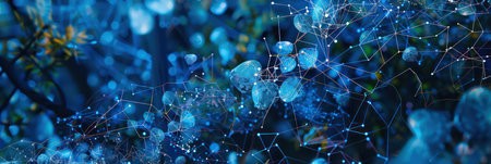 Green plant leaves with digital network connections concept. Background for technological processes, science, presentations, education, etc