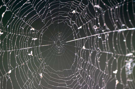 Spider web on a dark background. Scary spiderweb. Halloween concept