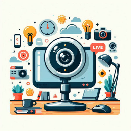 Small Modern Office Webcam For Live Streaming Meetings While Working From Home. Corporate and Technologies Theme.