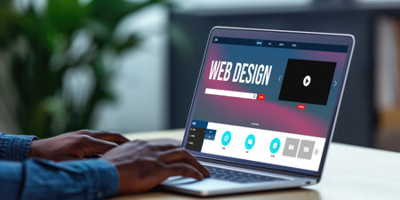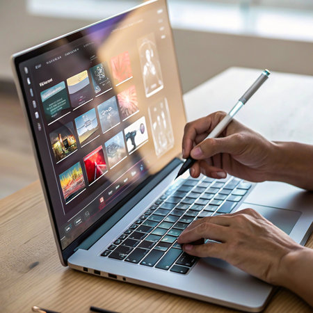 A person types intently on a laptop, browsing through various car models displayed on the screen. The sleek workspace features minimalist decor and ample natural light, inspiring creativity.