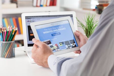 KHERSON, UKRAINE - FEBRUARY 19, 2016: male hands and laptop on background
