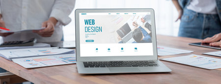 Developing programming and coding technologies with Website design in virtual diagram.cyber security internet and networking concept.Businessman hand working mobile phone on laptop computer background