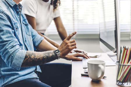 Close-up view of young ui development team working together in office room