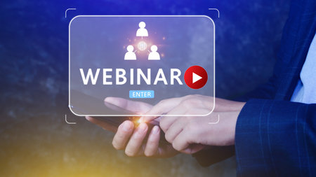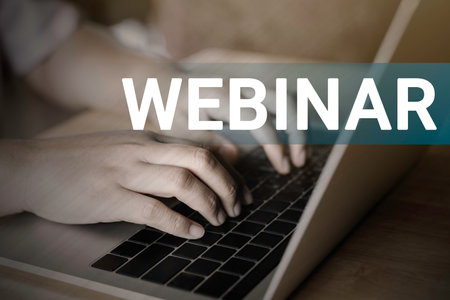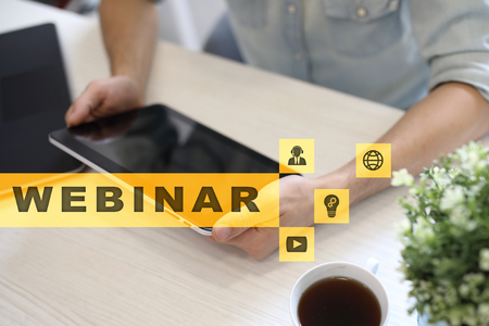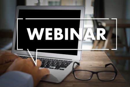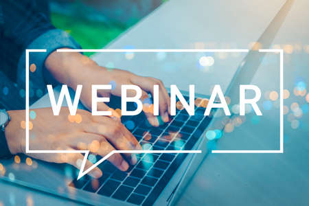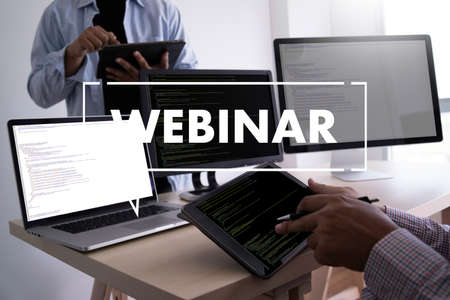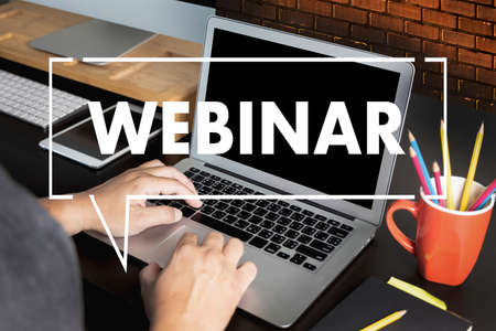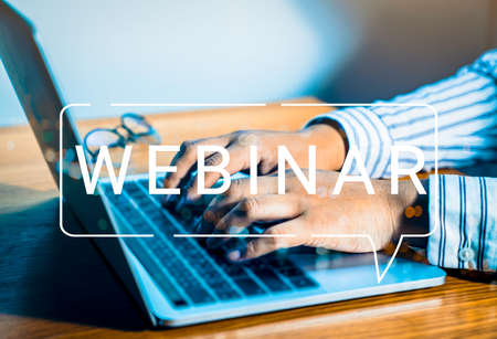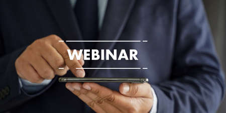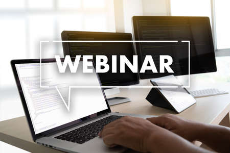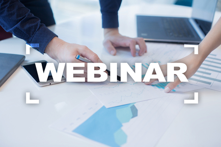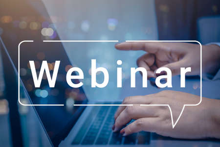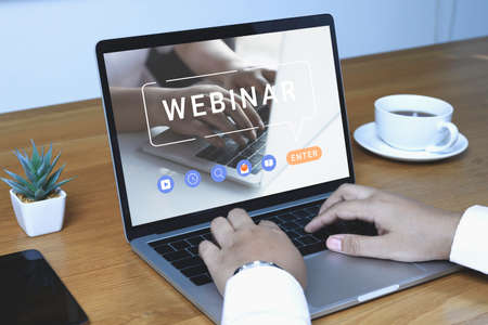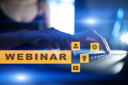 Webinar, Online training, Education and E-learning concept on virtual screen.