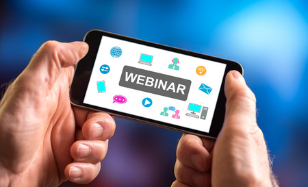 Webinar. The text of the message on the smartphone screen. Web conference, online meetings, presentations via the Internet at the computer.