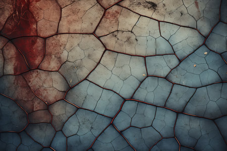 AI Generated. Abstract Blue Red Cracked Texture Background
