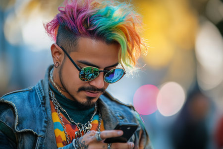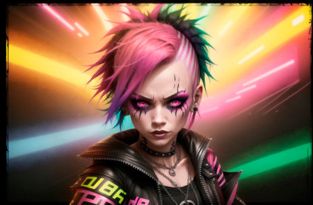 1980s 1990s style. Punk fashion as a reaction to the hippie movement of past decades and against materialistic values of the current decade. Retro, pop, hipster, neon, colorful, nineteenth