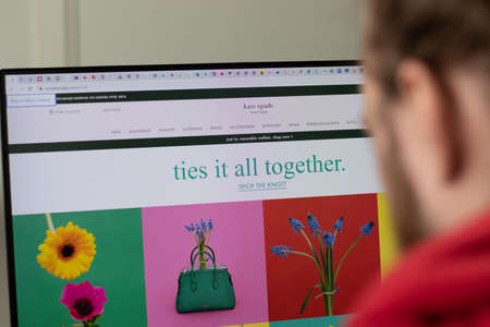New York, USA - 1 May 2021: Kate Spade company website with logo on screen, Illustrative Editorial