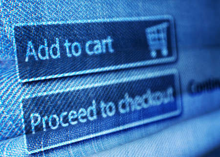 Online Shopping - Add To Basket Button On Background of Jeans