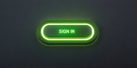 A pixelated Sign In button that appears to pulse with light glowing in a bright lime green against a dark background. The corners are slightly rounded giving it a friendly inviting.