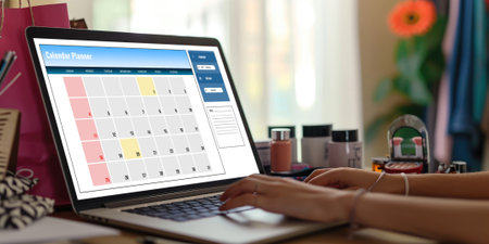 Calendar on computer software application for brisk schedule planning for personal organizer and online business