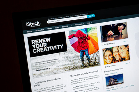Bangkok, Thailand - March 29, 2014: Close up of iStockphoto\'s main page on the web browser. iStockphoto is the world\'s leading online microstock photography provider founded by Bruce Livingstone in 2000.
