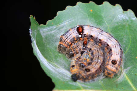 Caterpillar as a pest eating buxus leaves, Cydalima perspectalis as the biggest pest for buxus.
