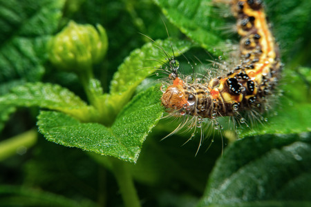 hairy caterpillar on the leaf