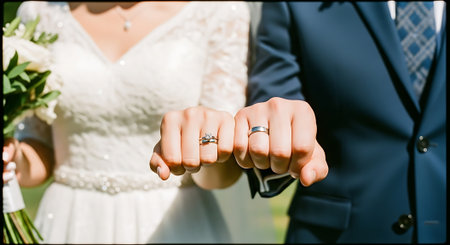 Joined hands of groom and bride.