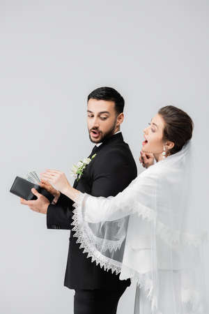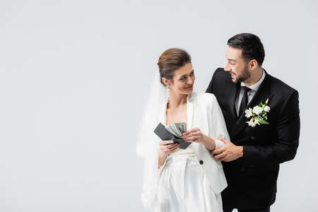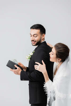 Wedding and money concept. Abstract bride and groom clothing.