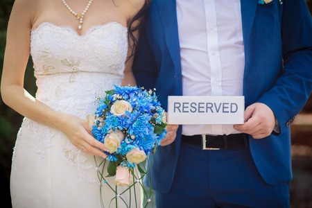 Wedding couple holding the bouquet