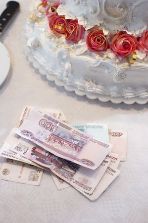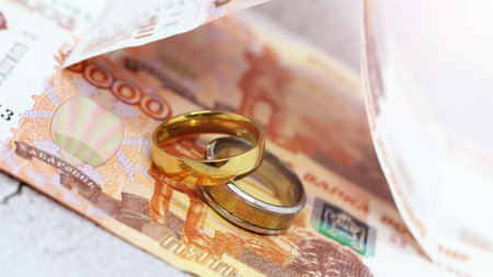 Two wedding rings and russian money so close