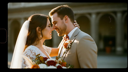 gorgeous wedding couple celebrating their wedding day in the old city