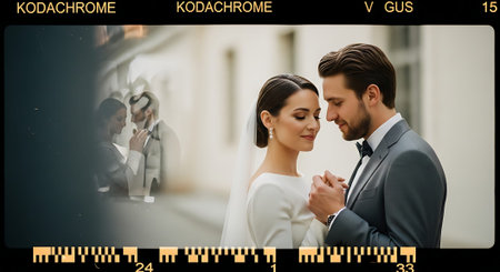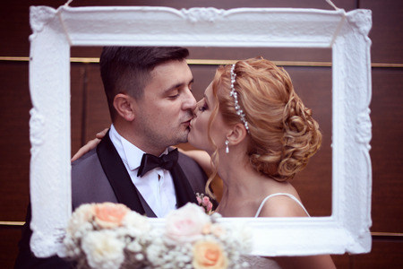 Bride and groom kissing through the frame