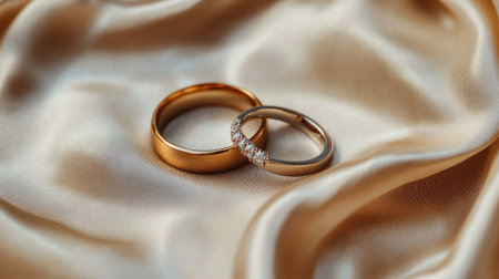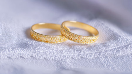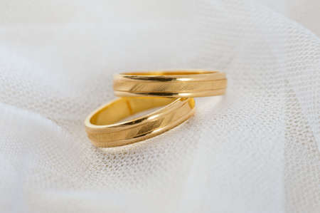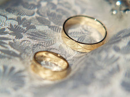 gold wedding rings on a gold cloth background