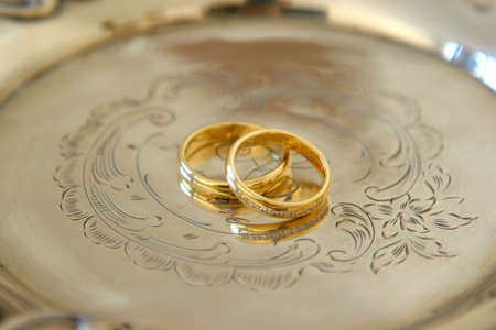 wedding rings on a silver plate